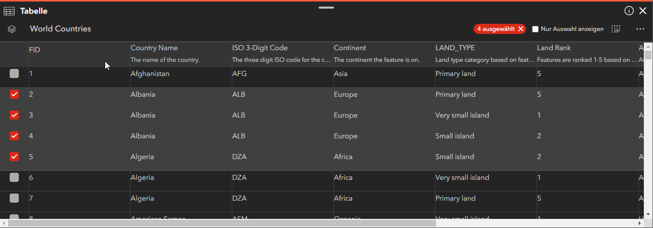 Die Attributtabelle ist ein interaktives Werkzeug, das Ihnen hilft, die Sachdaten von Objekten aus einer Karte in tabellarischer Form anzuzeigen und zu verwalten. Es ist direkt mit den Karteninhalten verknüpft, sodass Änderungen in der Tabelle sofort in der Karte sichtbar werden.