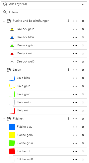 Features sind Objekte in der Karte, die einen Datensatz repräsentieren. Sie bestehen aus einer Geometrie und den Sachdaten. Um ein neues Feature zu erstellen, muss ein Thema zur Karte hinzugefügt sein, das eine Bearbeitung zulässt. Neue Themen können Sie über Kartenthemen hinzuladen.